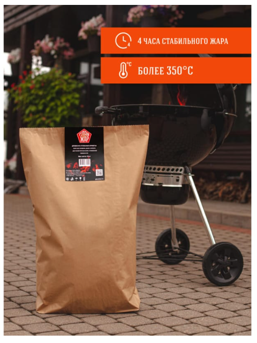 Длительность «рабочего» горения древесно-угольных брикетов составляет 240 минут, в отличие от обычного древесного угля, который горит 1-1.5 часа. Время полного сгорания брикетов 360 минут. Покупая брикеты из древесного угля практически по такой же цене, как и древесный уголь, можно использовать их в три раза дольше, что дает существенную экономию.