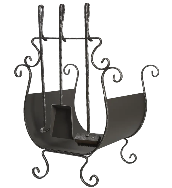 Набор каминный КН-6-21 включает совок, кочергу и щетку с витыми ручками. Аксессуары размещаются на оригинальной подставке. Изделия изготовлены из стали, отличаются прочностью, устойчивостью к влиянию повышенных температур и к механическим воздействиям. Специальное покрытие защищает металл от коррозии. Общий вес набора 7 кг. Страна производства товара — Россия.