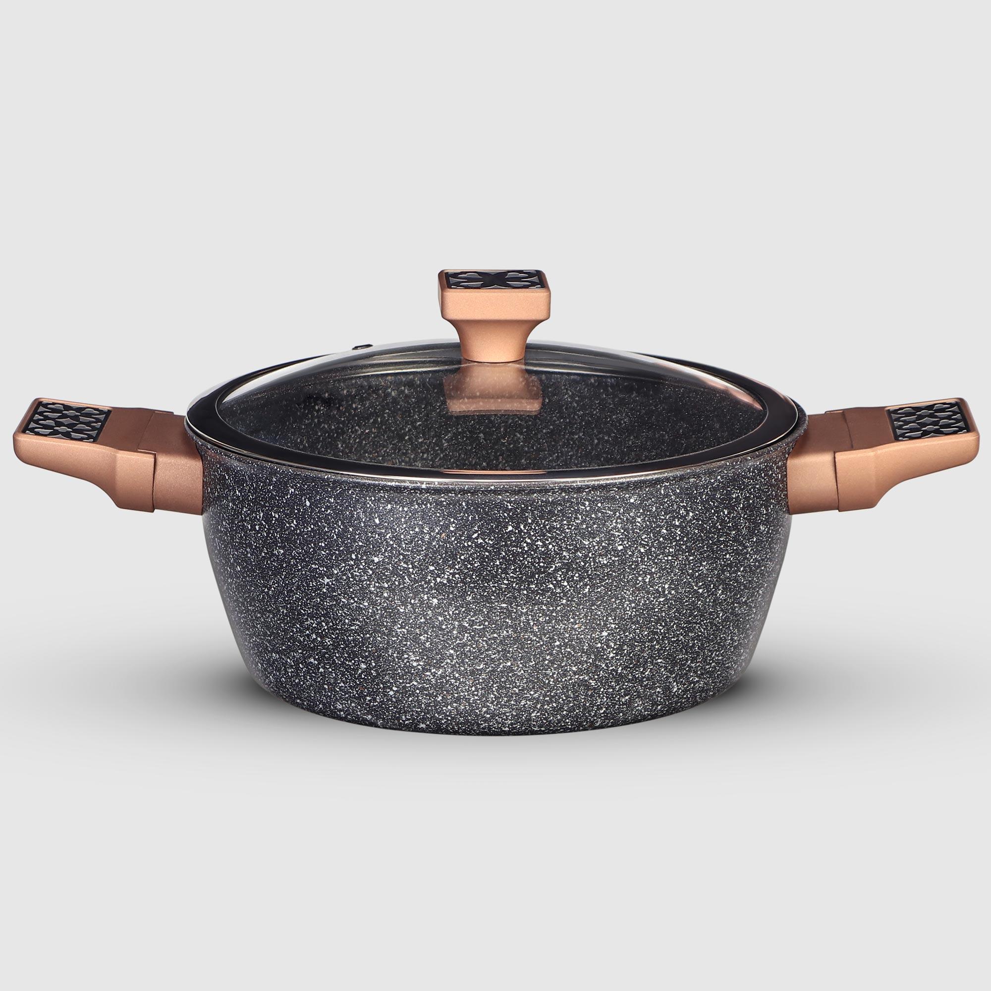 Кастрюля с крышкой от бренда Kitchenstar может похвастаться отличной теплопроводностью и удивительной долговечностью. Изделия выполнены из прочного и легкого алюминия.Мраморное покрытие внутри и лаковое снаружи устойчиво к царапинам и обладает исключительной долговечностью. Обладает антипригарными свойствами и легко чистится. Рекомендуется ручная мойка для более долгого срока службы, но допускается и мытье в посудомоечной машине.Стильные эргономичные коричневые бакелитовые ручки не нагреваются и удобно лежат в руке. Подойдет для всех видов плит: индукционной плиты, электрической, керамической и газовой плиты. Благодаря своей эстетичности и качественному исполнению, кастрюля идеально подойдёт на подарок.