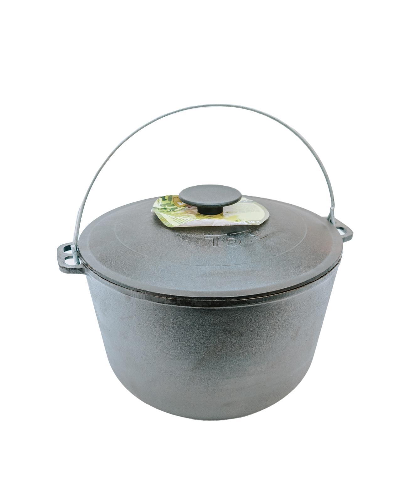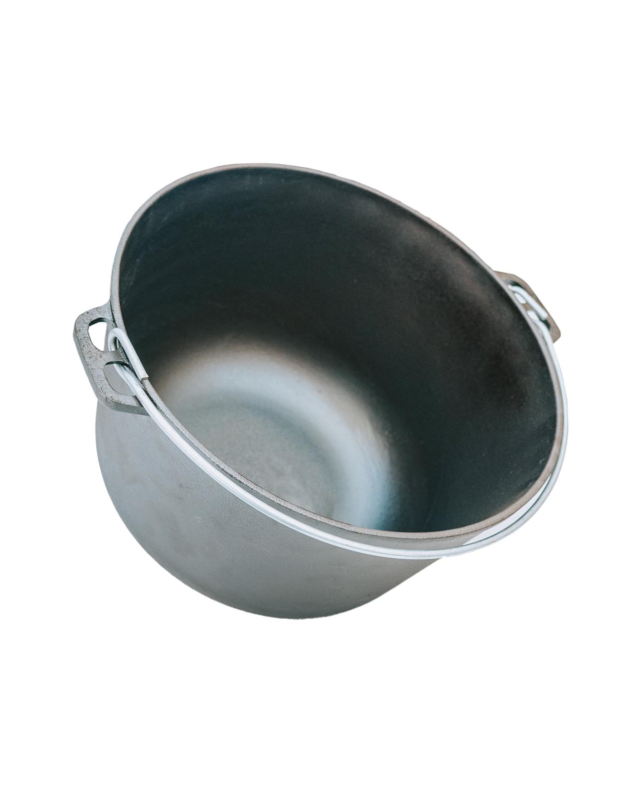 Казан 10л изготовлен полностью из литого чугуна. Такой чугунный казан подойдет для всех видов плит, а также его можно использовать как казан уличный на открытом огне (костре, мангале, гриле, очаге, углях). За счёт толщины стенок и полусферической формы происходит равномерный нагрев, и еда не пригорает. В комплекте идет крышка с ручкой. Казан котелок можно использовать как кастрюлю, сковороду для дома и дачи, как походный набор для пикника и сада. Чугунный казан позволяет приготовить вкусные и сочные блюда с насыщенным ароматом. Казан для плова - мечта любого повара! Перед первым использованием казана необходимо прокалить до полного выгорания индустриального масла. Разогретый казан протереть, соблюдая меры предосторожности и нанести тонкий слой растительного масла. Казан готов к эксплуатации.