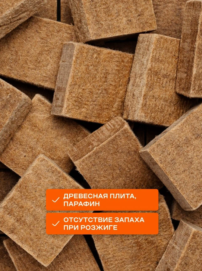 Древесно-волокнистые кубики для розжига — незаменимый продукт для создания комфорта в походных условиях, на пикнике, рыбалке, охоте.