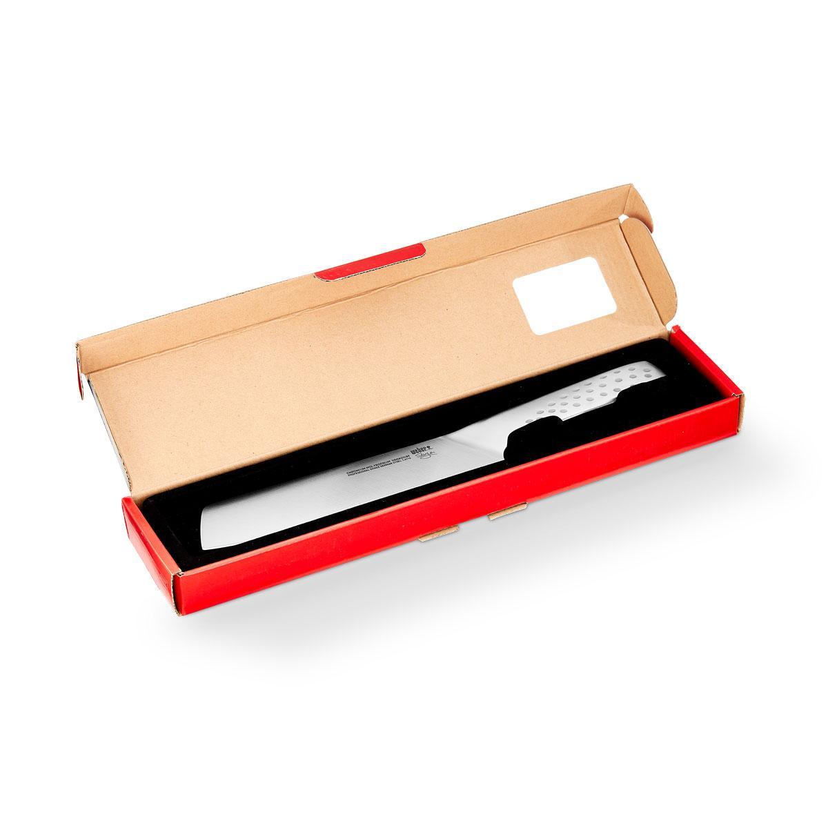 WEBER НОЖ ДЛЯ ОВОЩЕЙ DELUXE, БОЛЬШОЙ Порадуйте своих гостей великолепным салатом или азиатским рагу из множества разных овощей. При помощи острого ножа для овощей Weber, овощи можно нарезать легко и быстро. Нож выполнен из высококачественной нержавеющей стали и отличается элегантным дизайном, который подходит для любой кухни. ИЗГОТОВЛЕН ИЗ НЕМЕЦКОЙ ВЫСОКОКАЧЕСТВЕННОЙ НЕРЖАВЕЮЩЕЙ СТАЛИ ЭРГОНОМИЧНАЯ РУЧКА ОБЕСПЕЧИВАЕТ УДОБСТВО ЗАХВАТА ВЕС РУЧКИ И ВЕС ЛЕЗВИЯ СОЗДАЮТ ИДЕАЛЬНЫЙ БАЛАНС