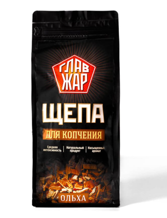 Ольховая щепа ГлавЖар предназначена для коптилен, мангалов и любых типов грилей, имеет среднюю интенсивность и нейтральный привкус. Идеально подходит для жирной рыбы, жирного и нежирного мяса, творога и сыров.