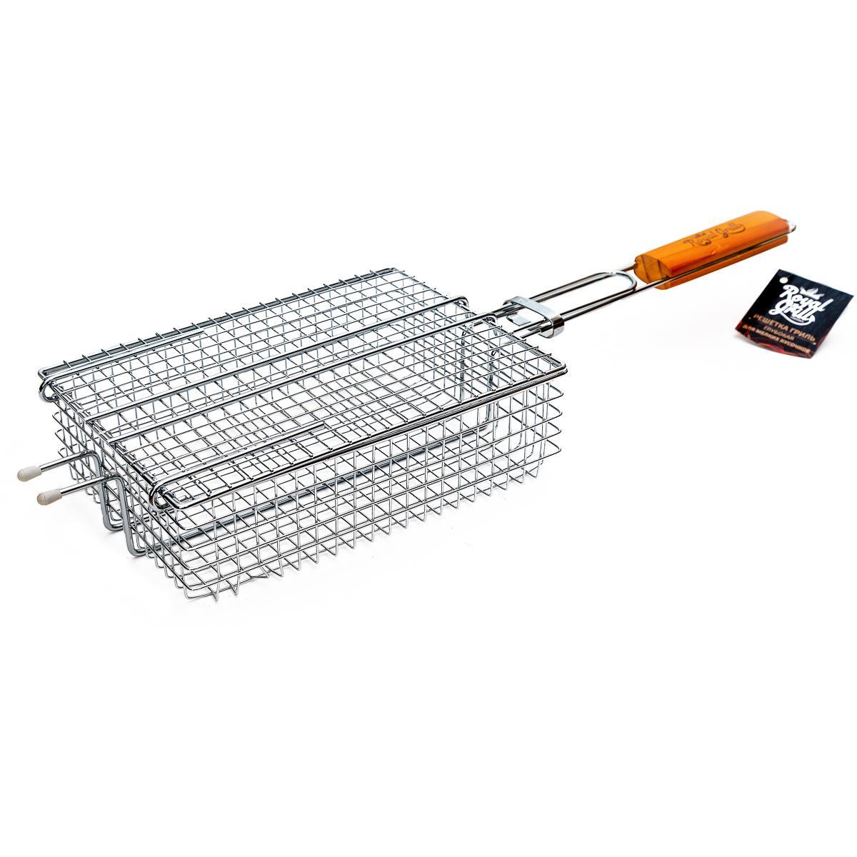 Необходимый атрибут для приготовления вкусной еды на свежем воздухе – это решетка для гриля на мангал. Решетка для гриля изготовлена высококачественной пищевой стали, обеспечивающей ей длительный срок эксплуатации, а рукоятка выполнена из дерева. Гриль решетку удобно взять с собой на природу, на дачу и приготовить на мангале, углях и огне: шашлык, овощи, мясо, птицу, рыбу. Размер рабочей поверхности решетки для барбекю 25,5 х 18 х 8 см. Решетка предназначена для приготовления мелких кусочков мяса, птицы, рыбы, овощей. Общая длина с деревянной ручкой 60см. Фиксирующее кольцо предотвращает случайное раскрытие во время приготовления пищи.