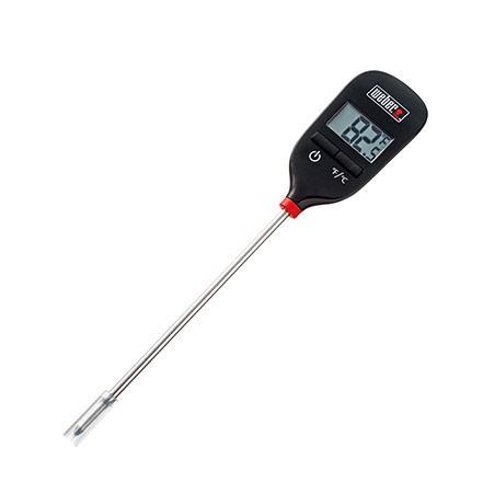 Цифровой карманный термометр Weber 6750 имеет длинный шуп и используется для определения готовности мяса. Цифры выводятся на большой четкий дисплей, что позвоялет быстро и легко прочитать данные. Удобство. В зависимости от желания пользователя температура измеряется в градусах Цельсия или Фаренгейта. Долговечность. Щуп выполнен из нержавеющей стали и защищен специальным колпачком. Компактный прибор. Термометр имеет малый вес и небольшие габариты, поэтому легко помещается в карман фартука.