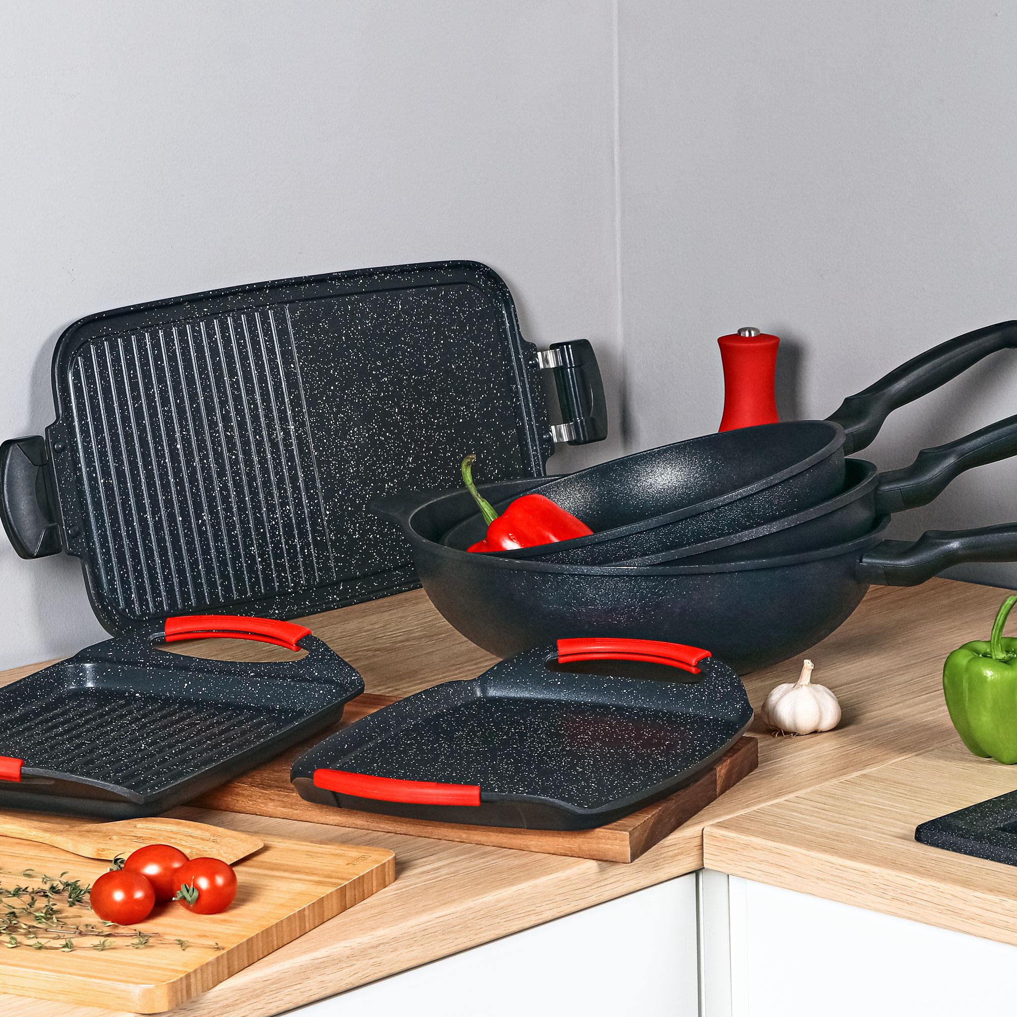Сковорода нового поколения изготовлена в минималистичном стиле из литого алюминия с антипригарным покрытием высочайшего качества. Сковородка с стильным ярким дизайном имеет каменное покрытие внутри и лаковое снаружи, устойчивое к царапинам и обладающее исключительной долговечностью. Обладает антипригарными свойствами и легко чистится.Толщина дна в 4,5 мм не позволит вашему блюду пригореть и сохранит первоначальный внешний вид посуды без деформации