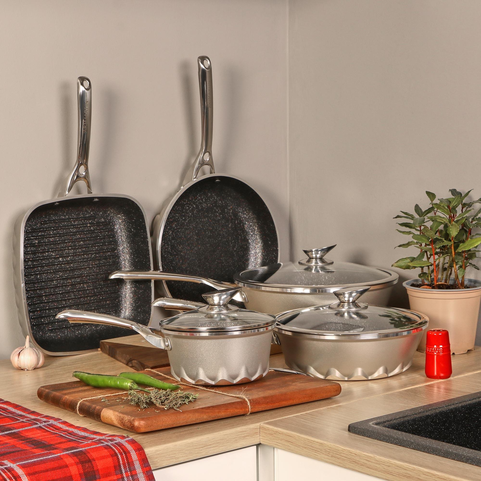 Посуда бренда Kitchenstar из коллекции Artmartin имеет оригинальную форму и изготовлена из литого алюминия с антипригарным каменным покрытием высочайшего качества.