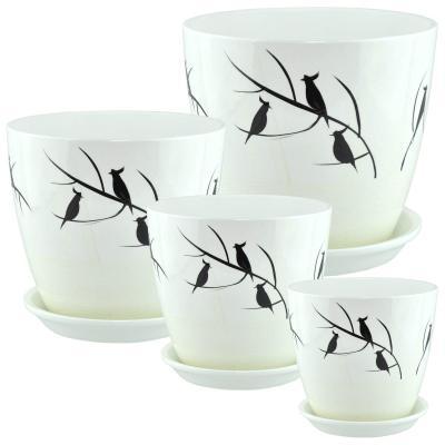 Горшок для цветов керамический с поддоном и дренажным отверстием. Материал - керамика.