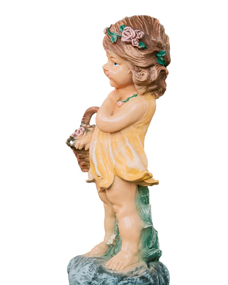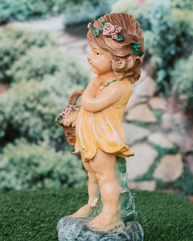 Садовая фигура «Девочка на камне с корзиной цветов» подойдет для украшения Вашего садового участка. Дачные фигурки из полистоуна имеют высокую устойчивость к негативным внешним факторам в виде плохой погоды, сырости, жары, ультрафиолетовым излучениям. Фигура декоративная долговечна и будет радовать своих владельцев долгие годы. Фигура для сада проста в уходе, для очистки достаточно протереть его влажной тканью, по необходимости с использованием любых моющих средств. Сувенир сделает дворик особенно красивым и уютным.