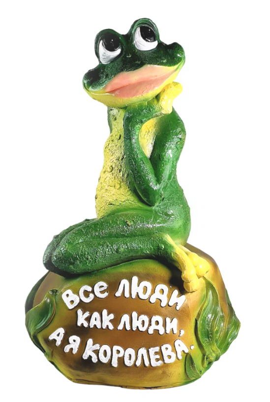 Садовая фигура "Лягушка-королева", высота 51см, длина 33см, ширина 26см. Полистоун. Изделие изготовлено из полистоуна - искусственного камня, обладающего повышенной прочностью и износостойкостью, он устойчив к воздействию влаги и ультрафиолетовых лучей. Благодаря широким возможностям передачи тончайших деталей и расстановки мельчайших акцентов, полистоун является лучшим материалом для воплощения самых смелых художественных замыслов.