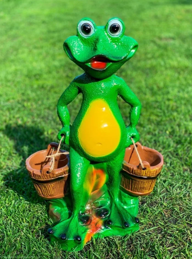 Садовая фигура Лягушонок с кадками выполнена из полистоуна.