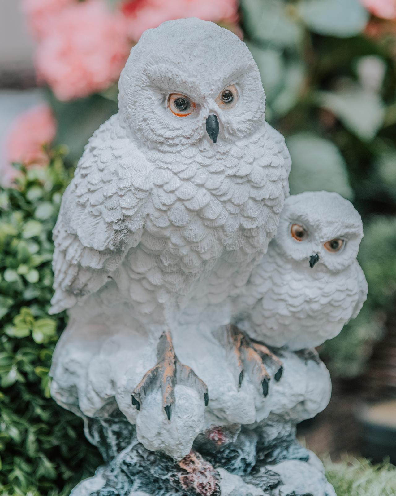 Садовая фигура «Совы полярные» поможет украсить приусадебный участок, придать ему уникальности. Проявите себя в роли ландшафтного дизайнера и с помощью садовых фигур расставьте акценты: например, привлеките внимание к цветочной клумбе или водоёму. Сова - символ мудрости и проницательности — будет оберегать красоту сада. Реалистичный дизайн поможет создать красочную зону во дворе или саду, которая ежедневно будет поднимать вам настроение. Садовые фигуры устойчивы к любым погодным условиям. Им не страшны ни солнечные лучи, ни влажность, ни перепады температуры.