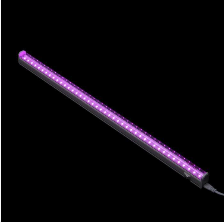 Фиолетовое свечение предназначено для досветки с целью ускорения роста рассады и стимулирования цветения. Мощность светильника составляет 10 Вт, площадь освещения 0,8-1,5 м2. Корпус светильника изготовлен из белого пластика. Рассеиватель из прозрачного полимерного материала. Выключатель расположен на корпусе. Степень пылевлагозащиты светильника IP40. Длина кабеля питания - 1,2 метра. Класс энергопотребления А+. Простой накладной монтаж.