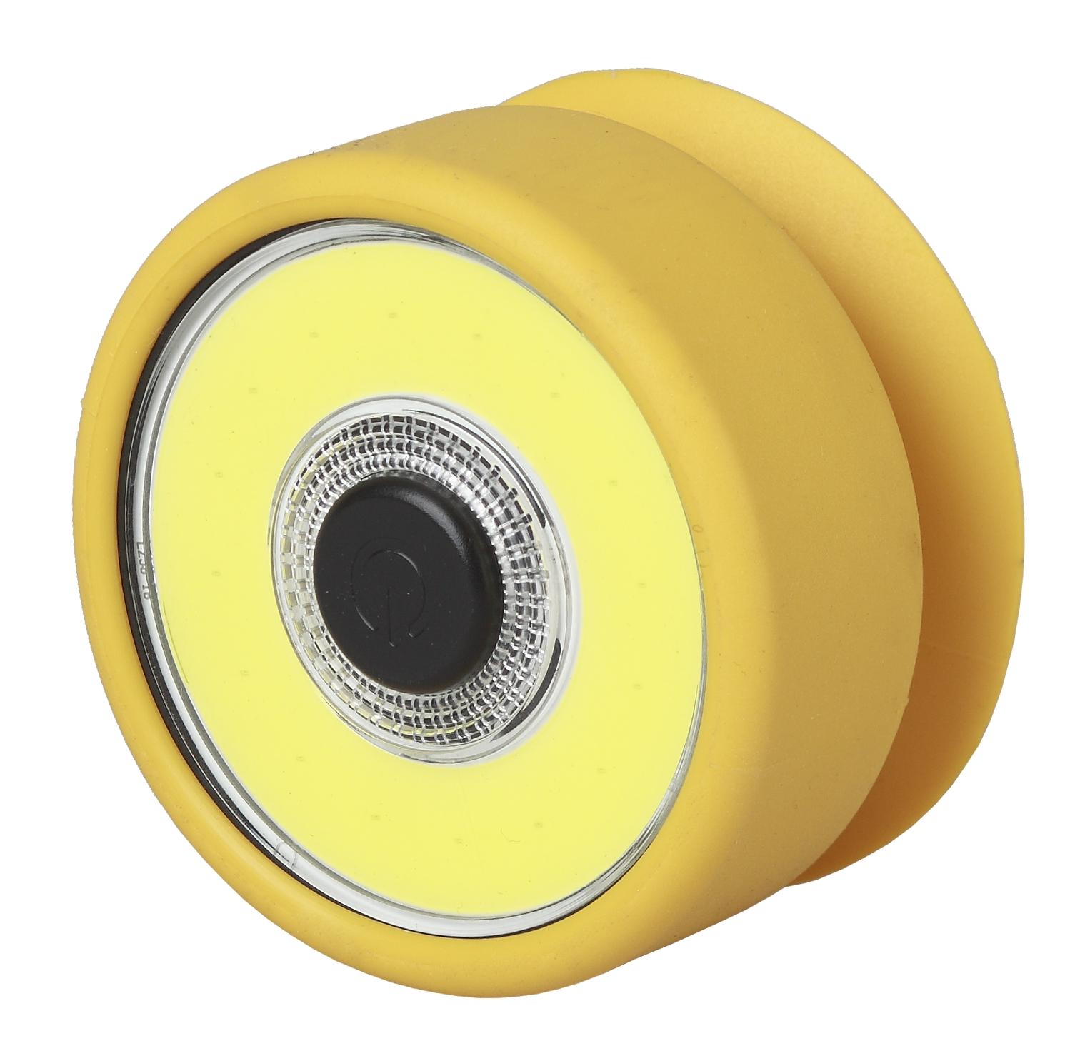 Рабочий фонарь ЭРА RB-703 Практик 5Вт COB, 3xAAA, присоска Б0027822 - фонарь-присоска с чехлом из резины, который быстро крепится на любой тип гладкой поверхности. Очень компактный, создает яркий ровный свет. Имеет круглую форму. Кнопка включения расположена по центру и окружена светодиодной платой премиум-класса. Это уникальная технология, пришедшая из промышленного освещения и адаптированная для универсальных фонарей. Ее преимущество в том, что освещение получается мощным и мягким одновременно. Резиновый чехол не только надежно удерживает фонарь на поверхности, но и защищает его от падений. Дополнительная гарантия долговечности - корпус из ударопрочного пластика. ЭРА RB-703 работает от трех батареек АА. Отличительный элемент дизайна - желто-черная цветовая гамма. Как у сигнальных оградительных лент. И это неслучайно: RB-703 - часть серии фонарей для профессиональных работ ЭРА Практик. Сверхмощные и суперфункциональные, эти фонари активно используются в строительстве, ремонте, при установке оборудования.