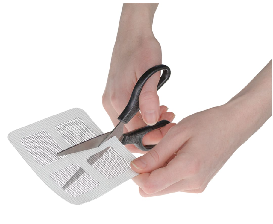 Чтобы наклеить заплатку нужно предварительно очистить поверхность москитной сетки от жира и загрязнений желательно спиртом, обрезать торчащие края. Вырезать заплатку из листа, приложить к поврежденному месту на сетке и плотно прижать.