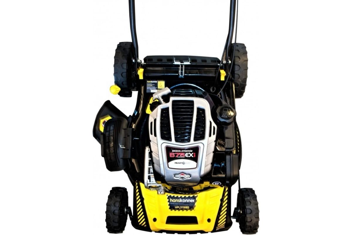 Бензиновая самоходная газонокосилка Hanskonner HPL5116BS работает с задним и боковым выбросом травы, с травосборником и с режимом мульчирования.