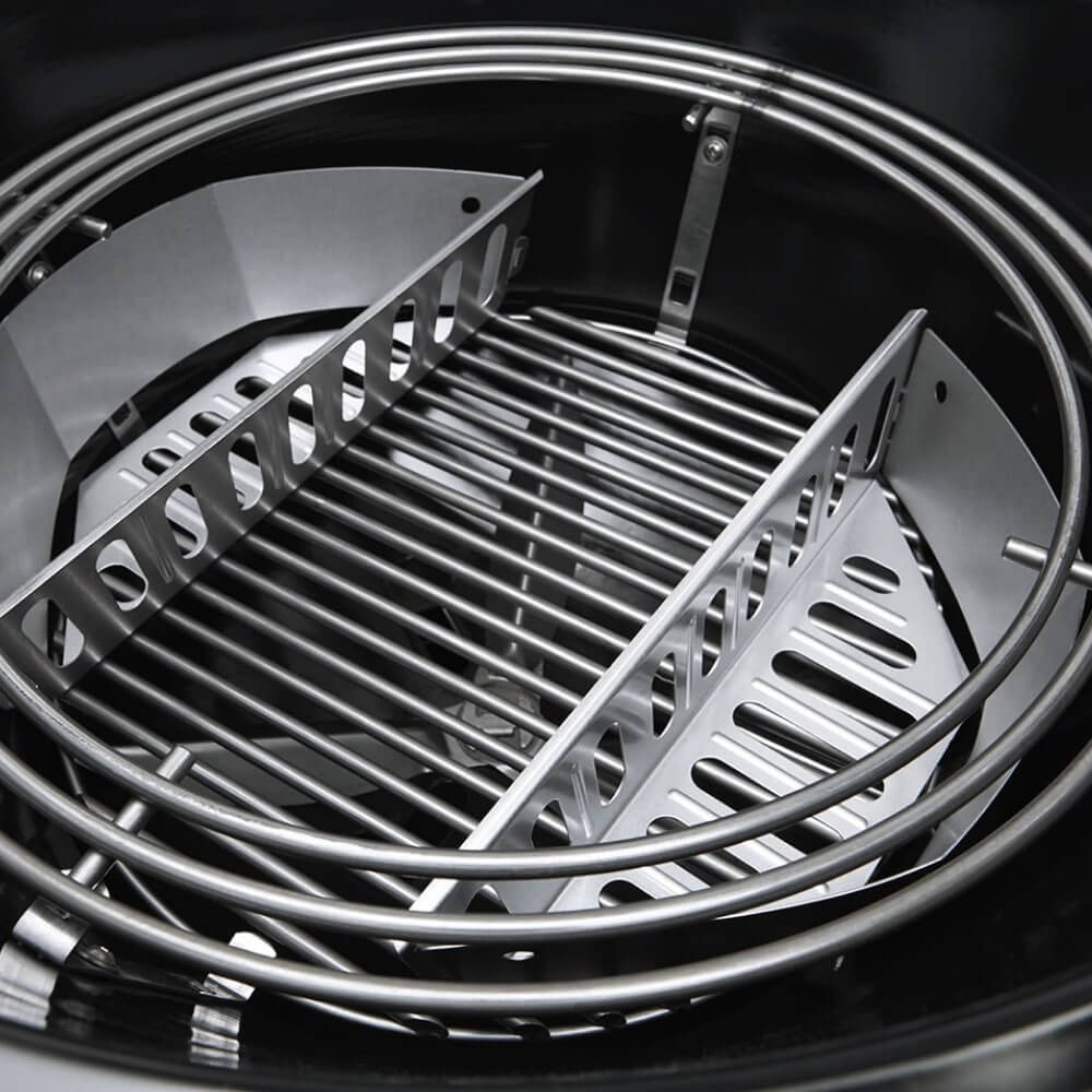 Котел с двойными изолированными стенками из долговечной стали и неограниченный потенциал для приготовления блюд делают угольный гриль Summit Kamado S6 Grill Center уникальным в своем классе.