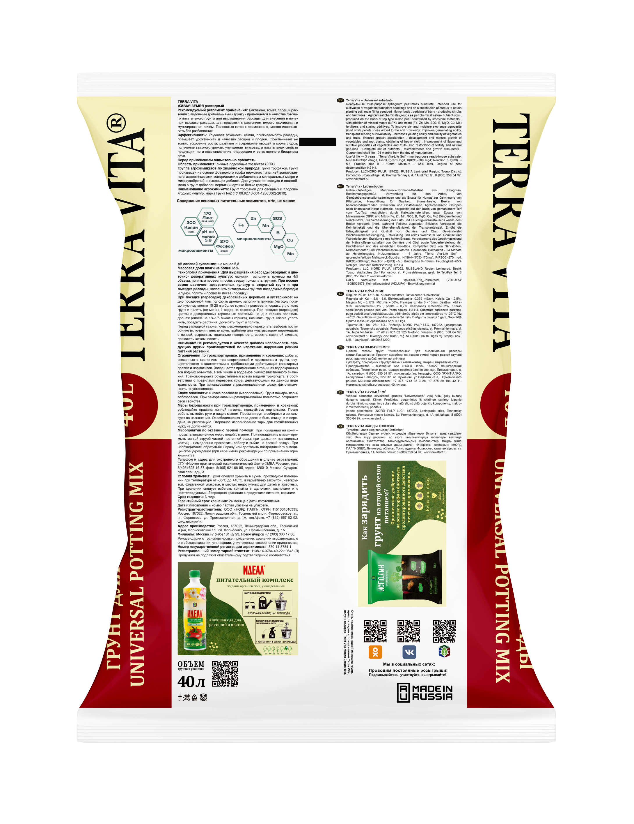 Terra Vita это универсальный грунт, созданный специально для выращивания различных видов растений, обладающих разными потребностями. Благодаря своему богатому составу, он идеально подходит для различных растений - как комнатных, так и садовых. Живая Земля подходит для посадки цветов, орхидей, суккулентов, фиалок, роз и других растений. Одним из главных преимуществ является его удобная упаковка в картонную коробку, что делает его простым в хранении и переноске. Это действительно выгодно, особенно для тех, кто занимается садоводством или имеет огород далеко от дома. Терра Вита это готовый к использованию грунт, который надежно обеспечивает растения всем необходимым для их нормального роста и развития. Благодаря минеральным компонентам, таким как перлит, песок и пеностекло, он обладает отличными воздухопроводными свойствами, эффективно предотвращает загнивание корней растений и способствует их здоровому развитию.