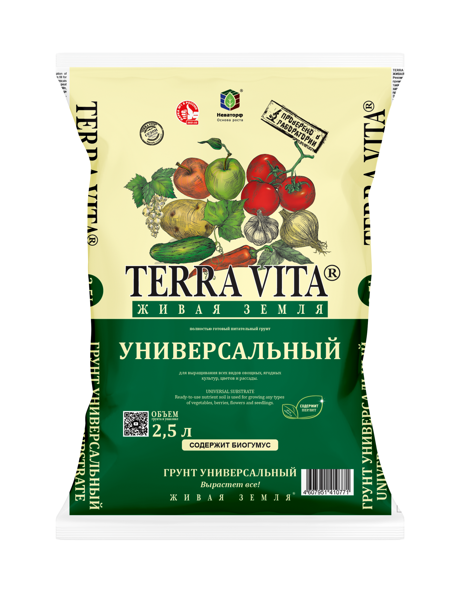 Грунт Живая Земля Универсальная Terra Vita 2,5л | Купить в интернет гипермаркете «Планета Лета»
