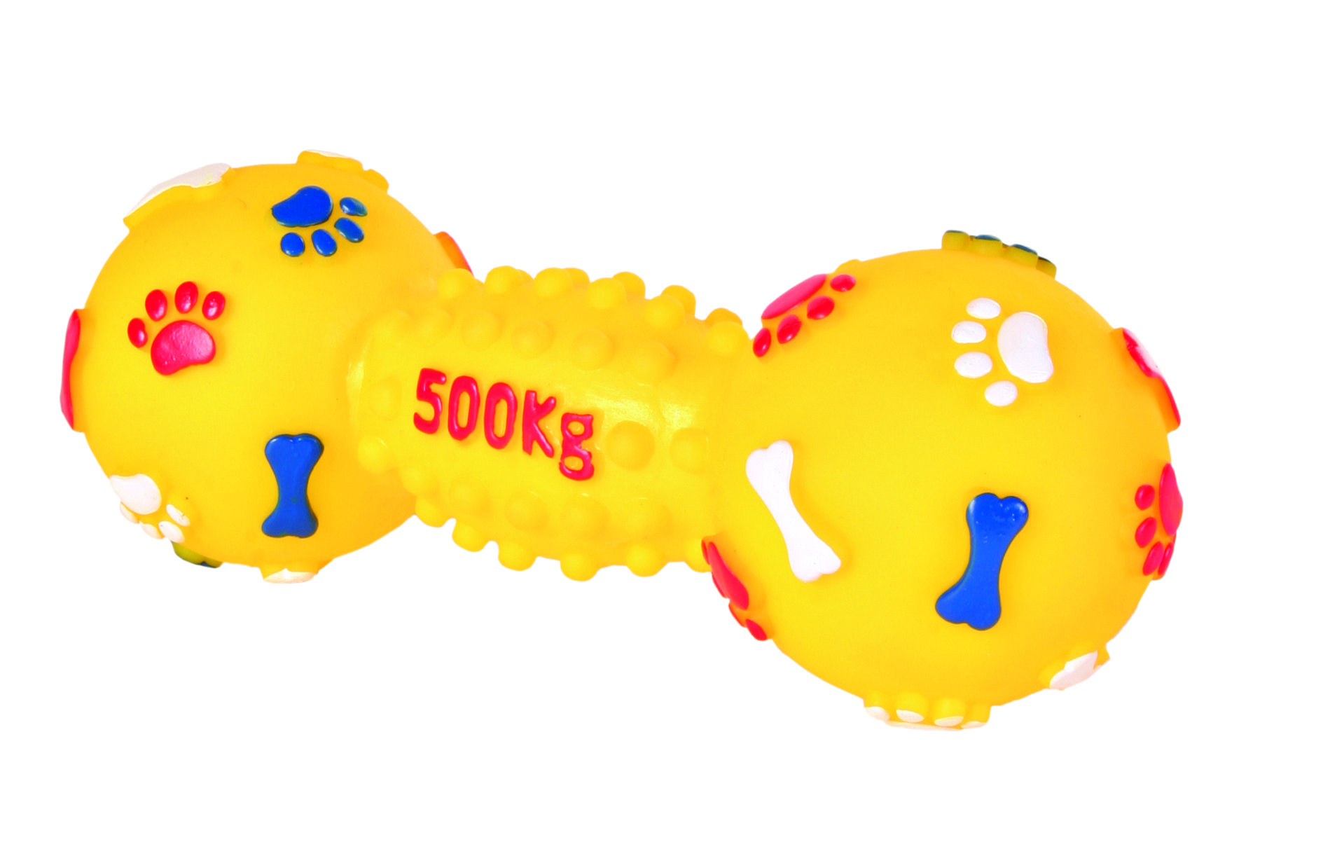 Товар в ассортименте, цвет отгружается в случайном порядкеСобаки - подвижные животные, им необходимо побегать на прогулке для здоровья и настроения. А поиграть с хозяином в мяч - прекрасное развлечение, которое займёт вашу собаку полностью, доставит огромное удовольствие от прогулки и беготни на свежем воздухе, сблизит вас с животным, настроит на доверительный лад. Просто бросайте мячик-гантельку, играйте с собакой. Прочный латекс прослужит максимально долго, пищалка всегда развлечёт собаку, многие обожают таскать игрушку в пасти и пищать ею.
