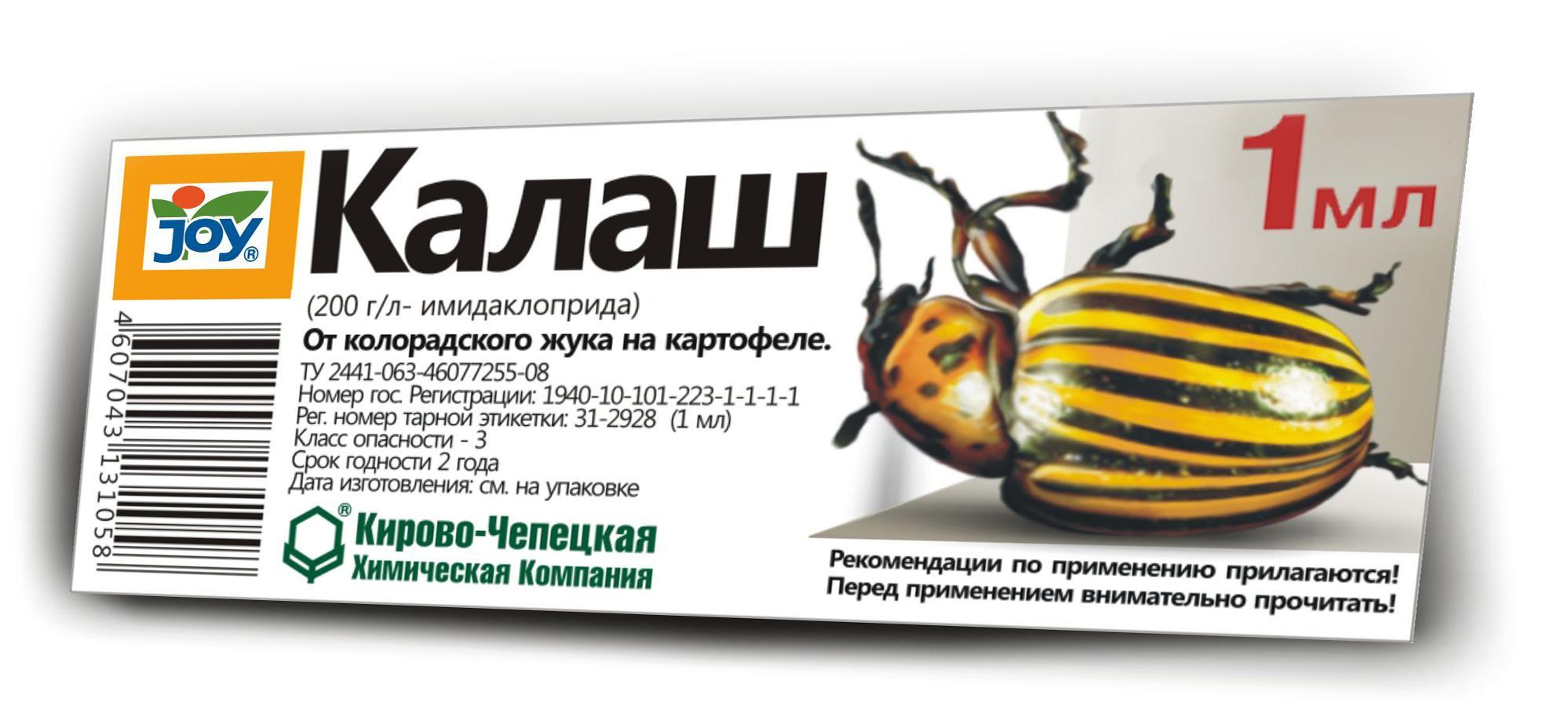 Препарат для борьбы с колорадским жуком JOY КАЛАШ 1 мл 4607043131058 предназначен для уничтожения колорадского жука и его личинок. Не оказывает отрицательного влияния при посадке картофеля и не вызывает привыкания у насекомых-вредителей; Обладает длительным периодом защитного действия – достаточно одной обработки; Действует в жару, эффективен при высоких температурах; Не смывается дождем и при поливе.
