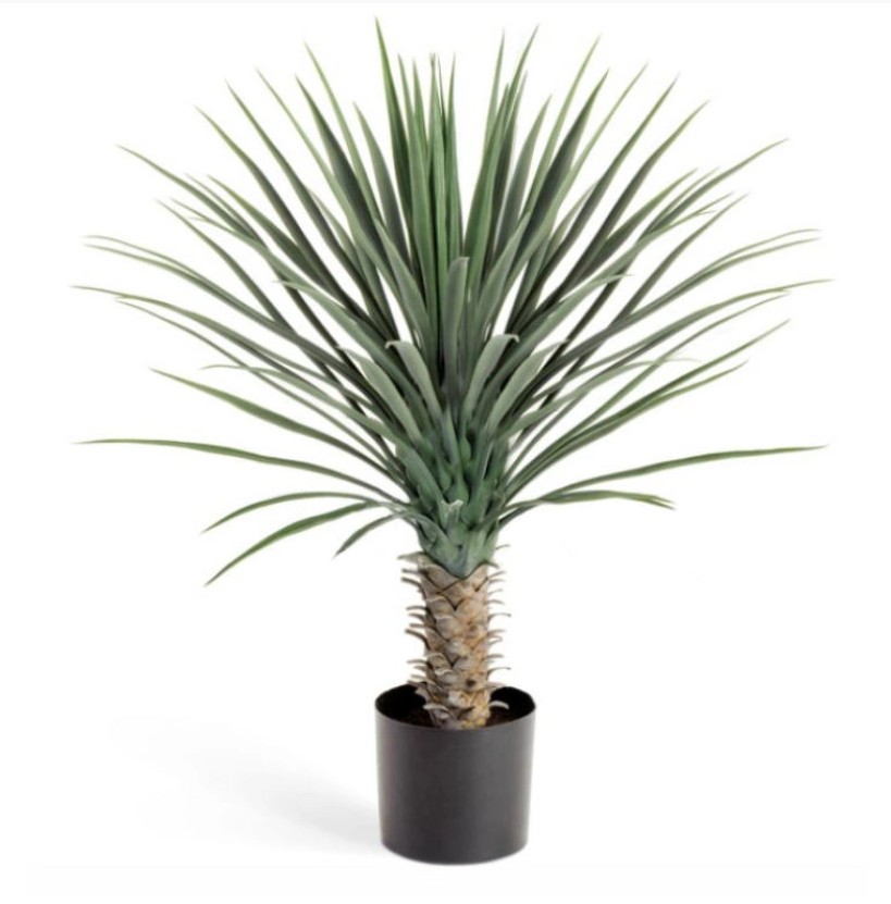 Юкка Рострата куст. Экзотическое и современное растение по форме напоминающий куст. Цвет - натуральный зеленый. Изготовлен в Бельгии. Листва - высококачественный полимер. Ствол - полимер с имитацией. 90 листов. Перевозится в транспортировочном кашпо, указанное на фото.