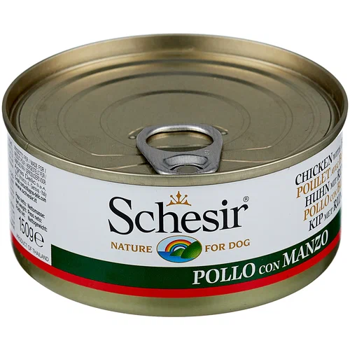 Schesir Dog Chicken Beef (Цыпленок, говядина) - это сбалансированный влажный корм для взрослых собак всех пород. Рацион содержит все необходимые питательные вещества, белки, минералы, витамины и другие компоненты для поддержания здоровья питомца. Входящее в состав филе цыпленка - это диетический и легкоусвояемый продукт. При минимальном количестве калорий оно содержит большое количество белка, который формирует и восстанавливает ткани организма. В нем много ценных витаминов, минералов и аминокислот. Витамины группы В способствуют нормальному функционированию нервной системы, витамин А отвечает за состояние шерсти и кожи, а также повышает сопротивляемость организма к инфекциям. В мясе говядины содержатся такие витамины, как Е, РР, В, Е; минералы: железо, кальций, магний, цинк, калий, фосфор, фтор, медь, марганец, молибден, а также незаменимые аминокислоты. Основная ценность говядины заключается в высоком содержании чистого белка, который формирует мышечную массу, дает силу и физическую выносливость.