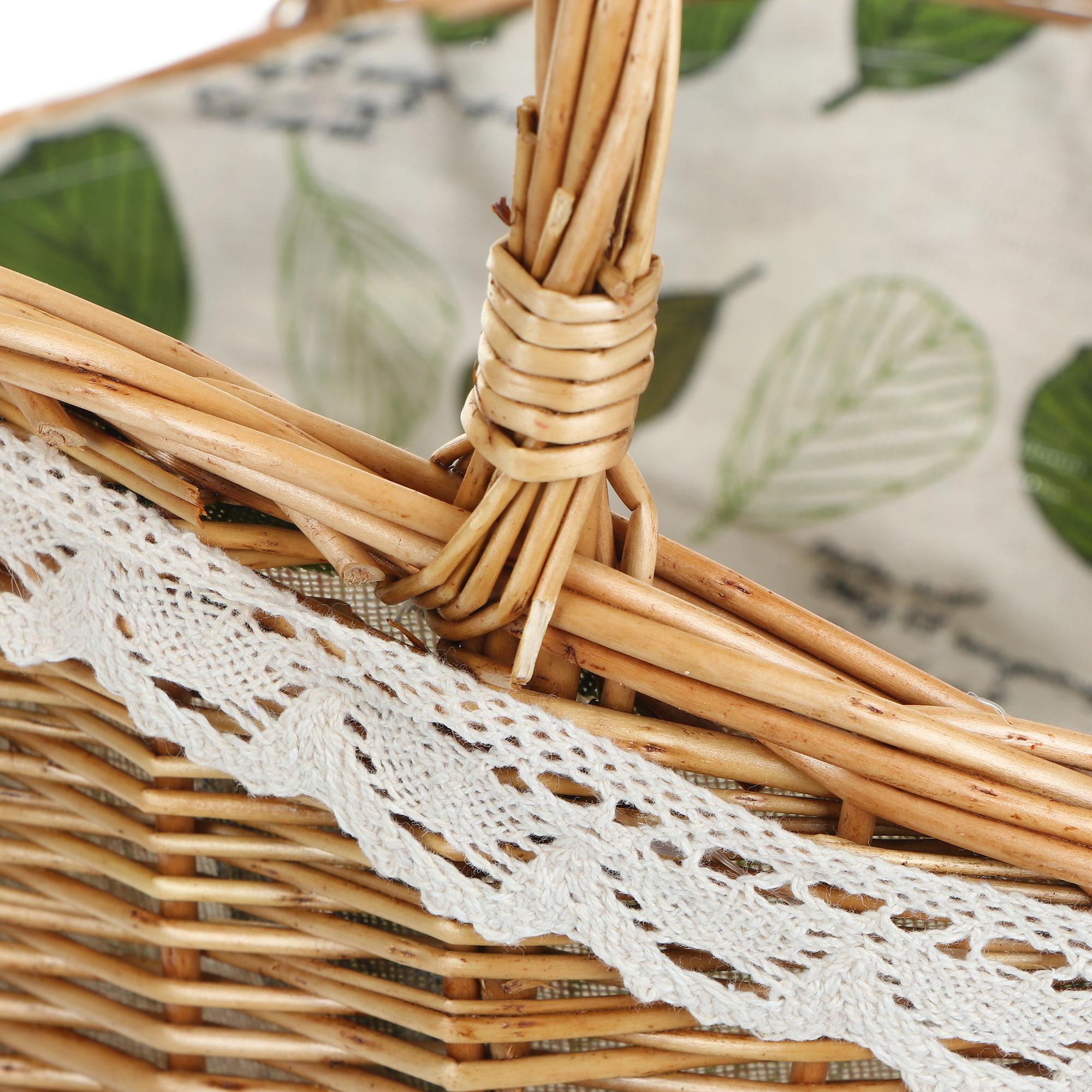 Плетёная сервировочная корзинка для хранения создаст приятную атмосферу в вашем доме! Плетеная корзина может быть использована, как как хлебница, фруктовница, конфетница. Она прочная, вместительная, выполнена из экологичных материалов: ивы, хлопка и полиэстера. С плетеной корзиной можно смело отправлять в гости, положив туда праздничные подарки. Стильную и удобную плетеную корзину с ручкой можно также использовать для хранения продуктов, рукоделья, в качестве декоративного элемента в доме, для поездок на природу.