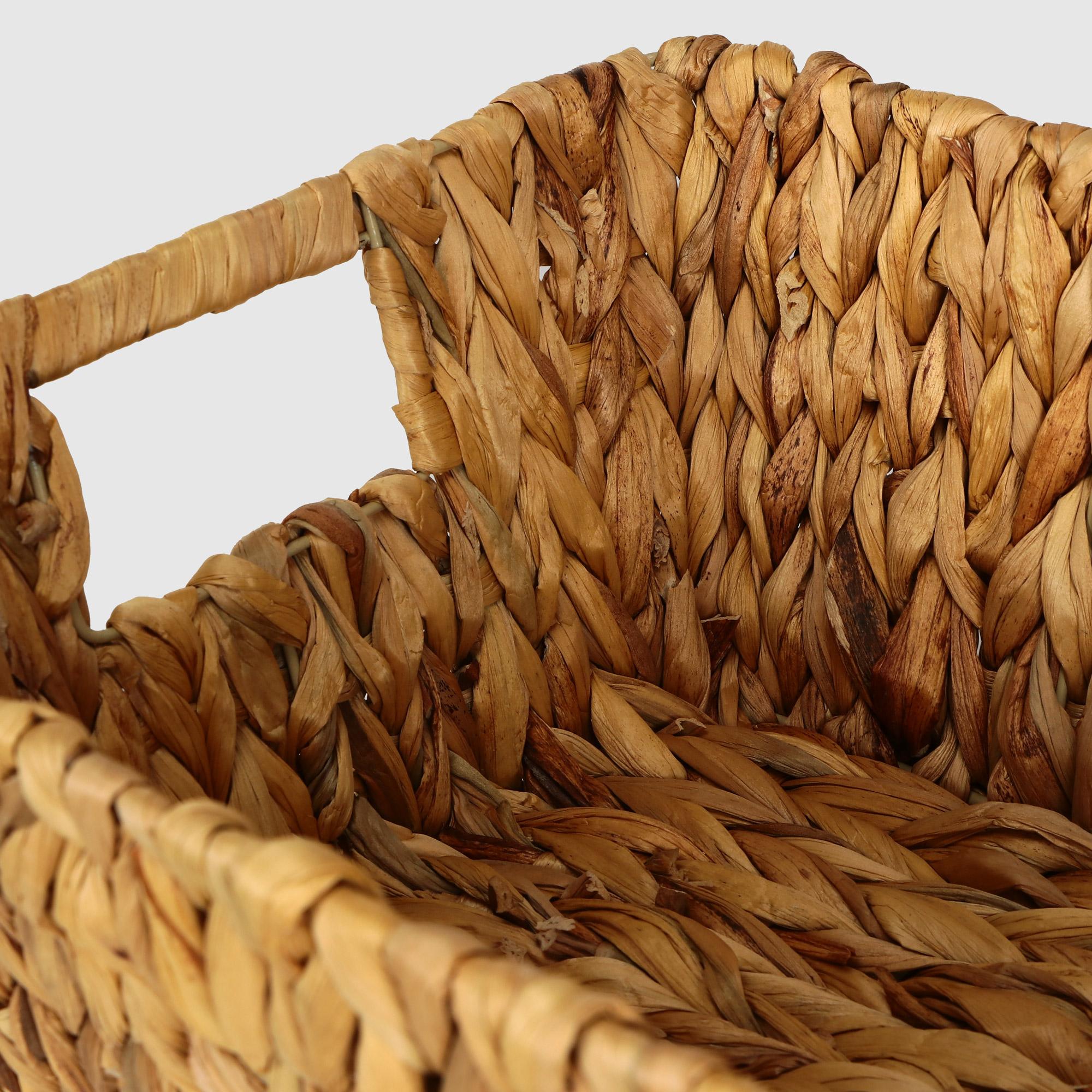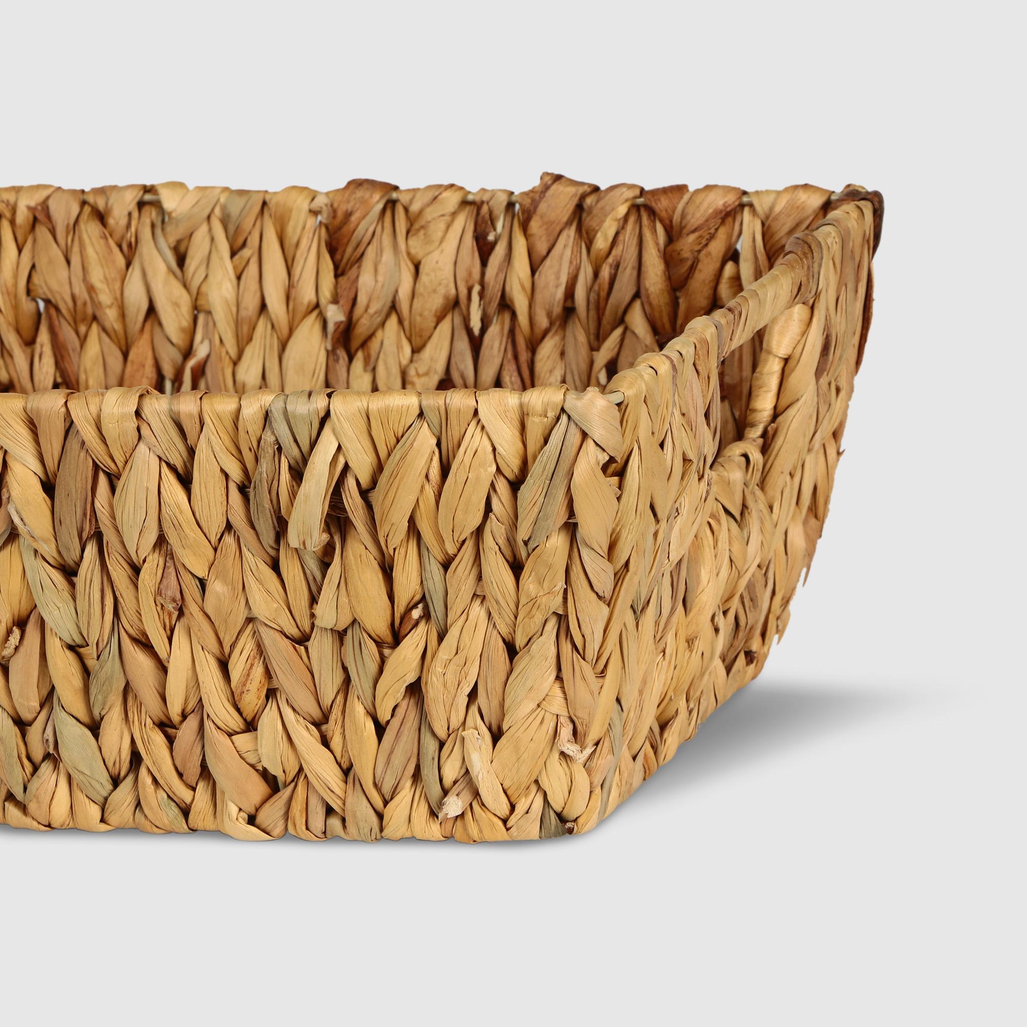Практичная плетеная корзина для хранения из водного гиацинта вмещает небольшие аксессуары для красоты, письменные или художественные принадлежности или предметы домашнего обихота. Эстетичный минималистический дизайн позволяет данной корзине вписаться в любой интерьер, а ручки для переноски добавляют изделию удобства. Плетеный контейнер подойдет как для личного пользователя, так и в подарок членам семьи или друзьям.