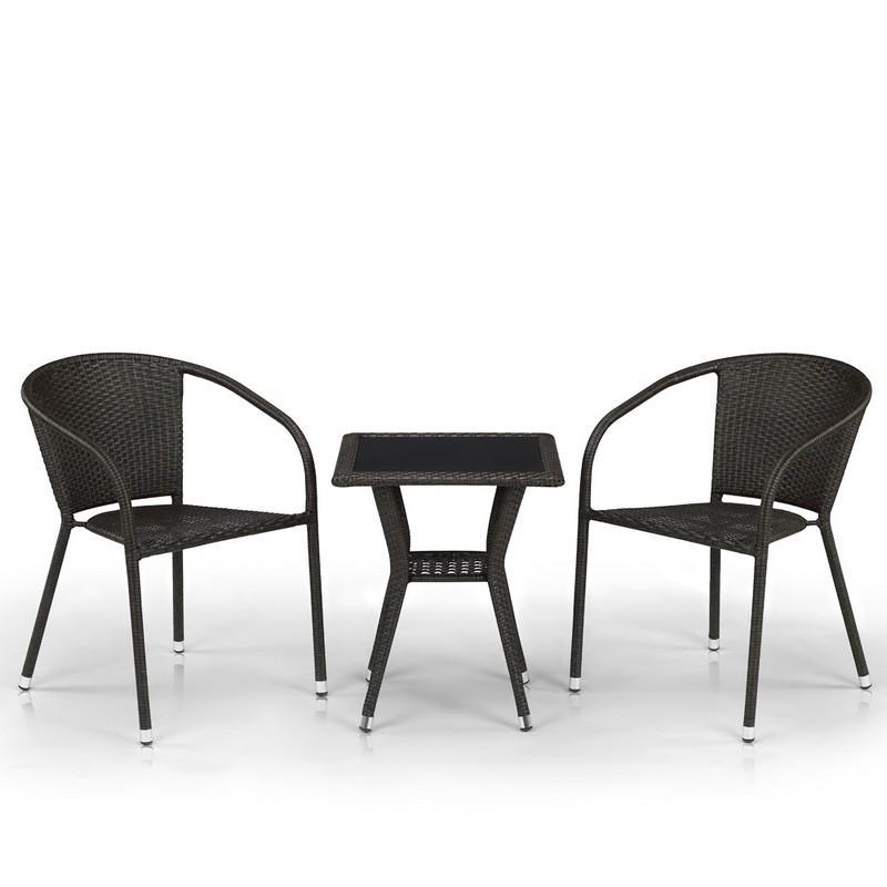 тол: 50х50х60 см. Стекло: закаленное- 5мм. стекло внутри столешницы, цвет - черный Кресло: 58x60x78 см. Каркас: сталь. Материал:искусственный ротанг Цвет: Brown. Объем: кресло - 0,3,стол - 0,02.