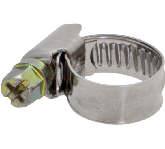 Корпус хомута выполнен из нержавеющей стали AISI 304 и может применяться для работы в агрессивных средах, в химическом машиностроении или в пищевом производстве. Диаметр обжимаемой трубы от 10 до 16 мм.
