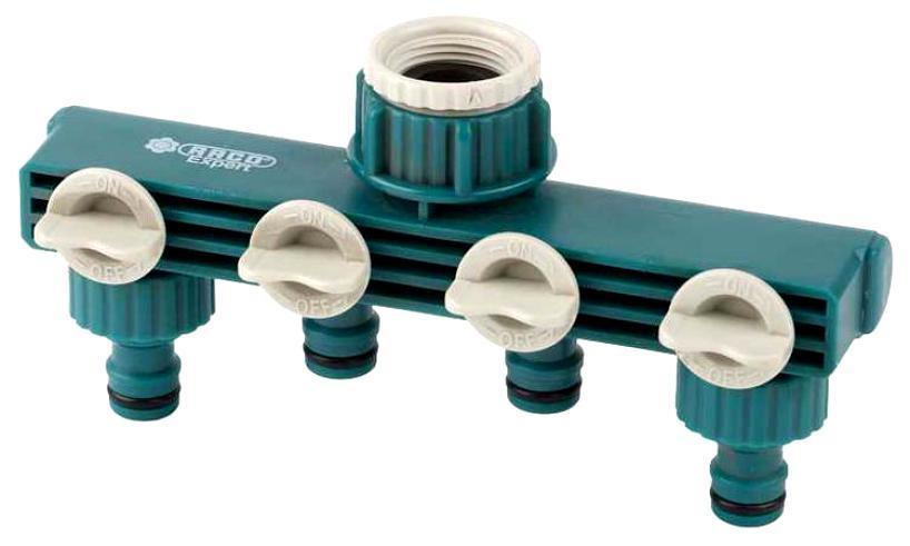 Четырехканальный распределитель Raco 4250-55257C является составной частью системы полива Raco Original и предназначен для разветвления подачи воды в шланге при поливе растений. Соединяется с водопроводной трубой с внешней резьбой диаметром 3/4 или 1 дюйм и крепится к шлангам через соединители. Краны предоставляют возможность регулировать напор воды в линиях. Распределитель Рако выполнен из высокопрочного нетоксичного ABS-пластика, что гарантирует длительный срок эксплуатации.