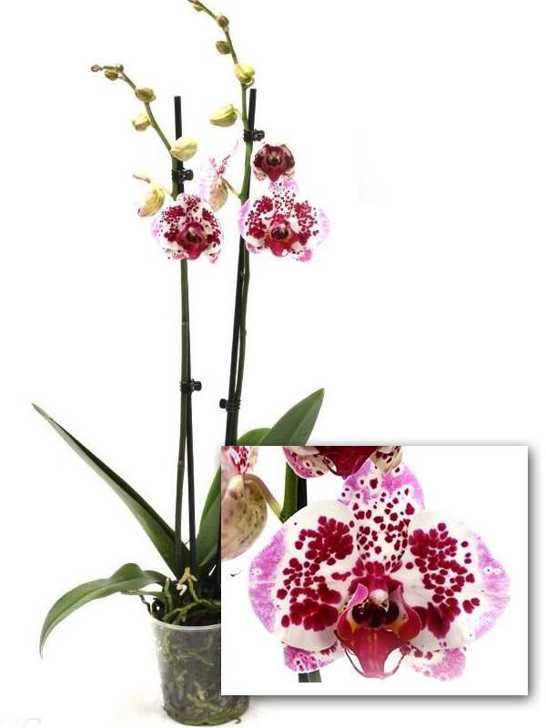Фаленопсисы (Phalaenopsis) — эпифиты из числа моноподиальных орхидей, с многочисленными воздушными корнями, которые, как и цветоносы, растут между листьями. Розетку образуют от 4 до 10 овально-вытянутых, с выраженной центральной складкой, кожисто-плотных, до 30 см в длину листьев.