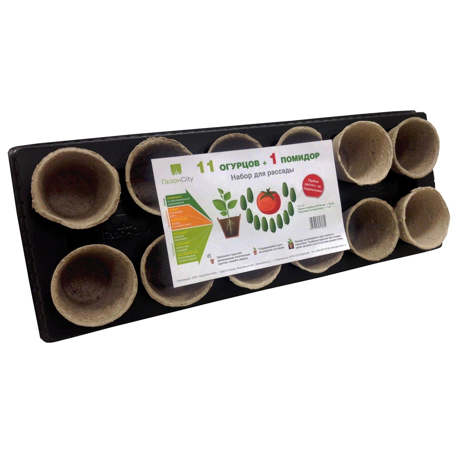Набор для рассады с торфяными горшками "11 огурцов и 1 помидор | Купить в интернет гипермаркете «Планета Лета»
