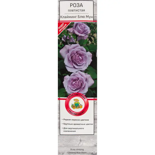 Саженцы розы плетистой Клайминг Блю Мун (Rosa, Climbing Blue Moon) оценят ландшафтные дизайнеры и любители необычных расцветок. Сорт расцветает фиолетовыми, практически синими цветами с пурпурными, серебристым и даже голубым отливом. Аромат насыщенный и очень приятный. Высокий ветвистый куст с гибкими побегами станет настоящим украшением палисадника, сада, миксбордера. Диаметр цветка достигает 10 сантиметров. Листва блестящая, плотная, зеленая. Цветет повторно, пышно и обильно на протяжении всего теплого сезона. Предпочитает солнечные участки и полутень. Высота растения может достигать 3,5-4 метров