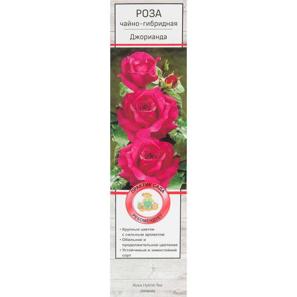 Джорианда - цвет ярко-розовый, почти фиолетовый. Цветки крупные 10-14 см, махровые (60 лепестков), классической формы, в полном роспуске - свободной чашевидной формы. Лепестки бархатистые, волнистые по краю. Цветение длительное, обильное. Аромат душистый, сильный, ярко выражен. Куст высокий 120 см, компактный. Листья темно-зеленые, плотные. Сорт устойчив к болезням и морозам. Используется для выращивания на клумбах, а также подходит для выращивания в комнатных условиях.