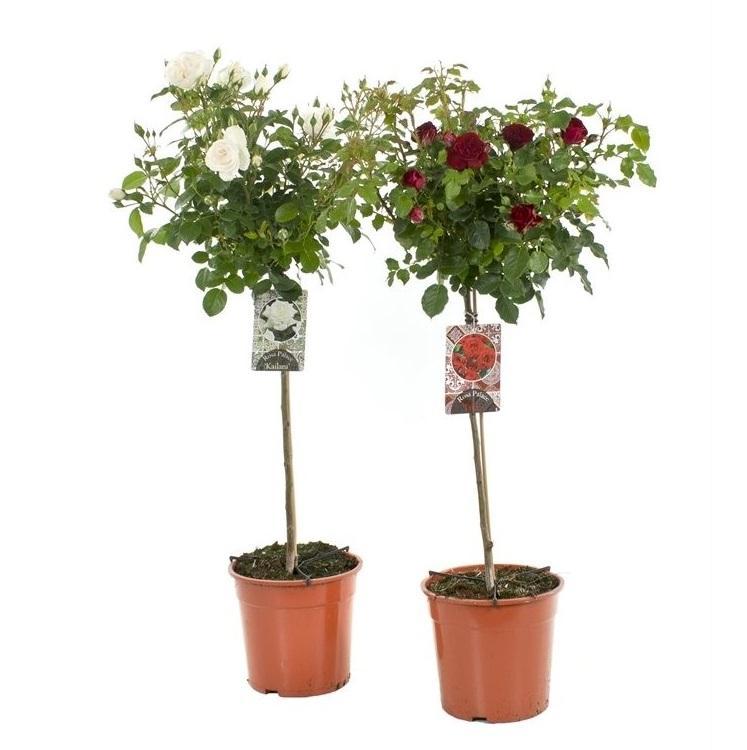 Штамбовые розы не являются самостоятельной садовой группой — скорее это прием садового искусства для эффектной демонстрации красоты роз. Неизвестно, какому энтузиасту и поклоннику розы пришла мысль поднять ее на пьедестал, но считают, что первые штамбовые розы были выращены в конце XVIII века путем прививки почкой на шиповник обыкновенный (Rosa canina).