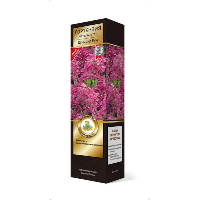 Гортензия метельчатая Диамант Руж (Diamant Rouge) - это компактный куст высотой не более 1,5 метра с крепкими и сильными побегами. Ветки коричневого цвета с красноватым отливом. Соцветия широкопирамидальные, с сильным преобладанием стерильных цветков. Вначале цветки бело-зеленые, затем розовеют и примерно через пару недель становятся насыщенно красного цвета. Обладает высокой зимостойкостью.