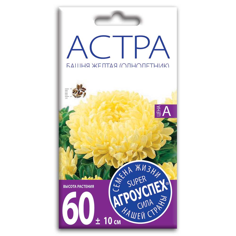 Пионовидная астра «Башня» — это растение с густомахровыми полусферическими или шаровидными бутонами жёлтого цвета. Широкие ладьевидные язычковые цветки достигают до 4 см в длину, все они направлены вверх и загнуты внутрь. На одном кусте всходит до 12 соцветий.