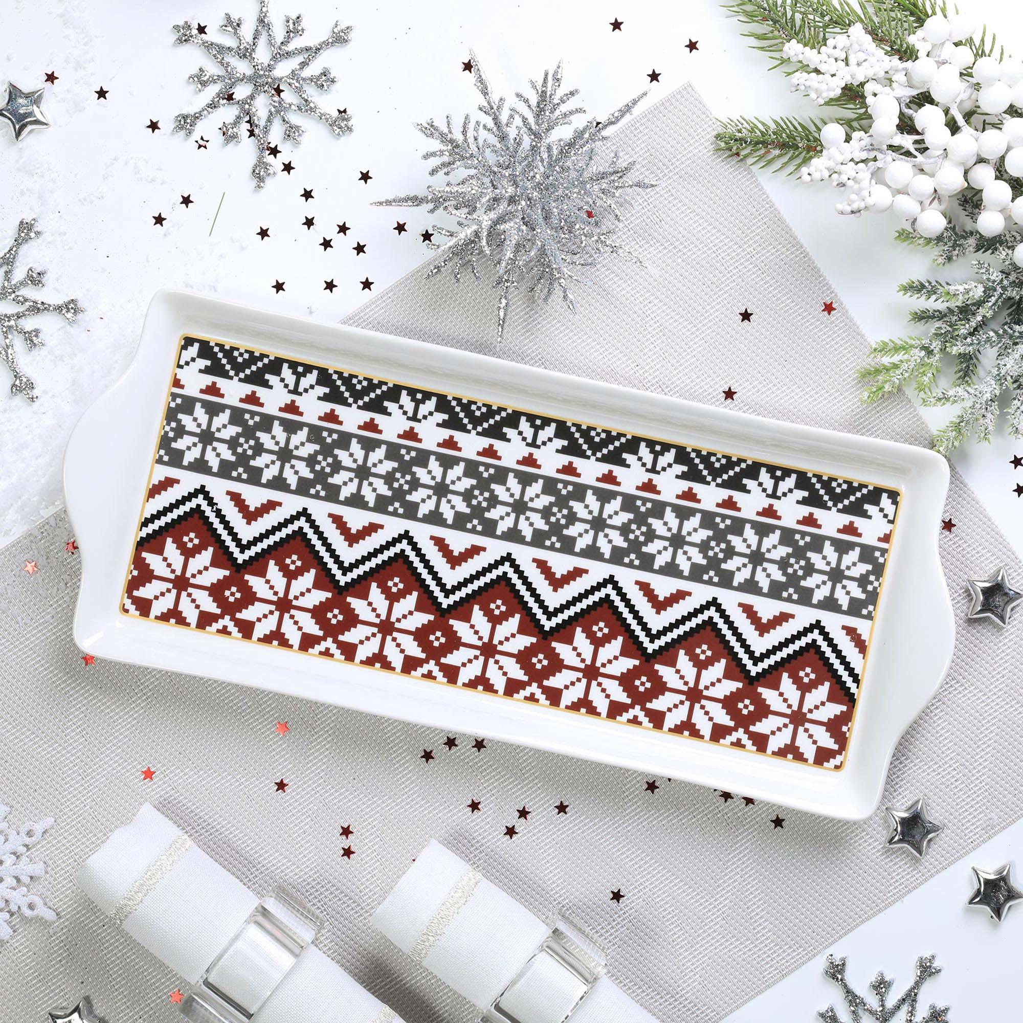 Сервировочное блюдо из новогодней серии White Rabbit украшено узором, который способен привнести еще больше тепла и уюта застолью, создав настоящую атмосферу праздника. Изделия из костяного фарфора являются легкими в уходе и прочными в эксплуатации, тем самым позволят украсить собой не одну торжественную сервировку.