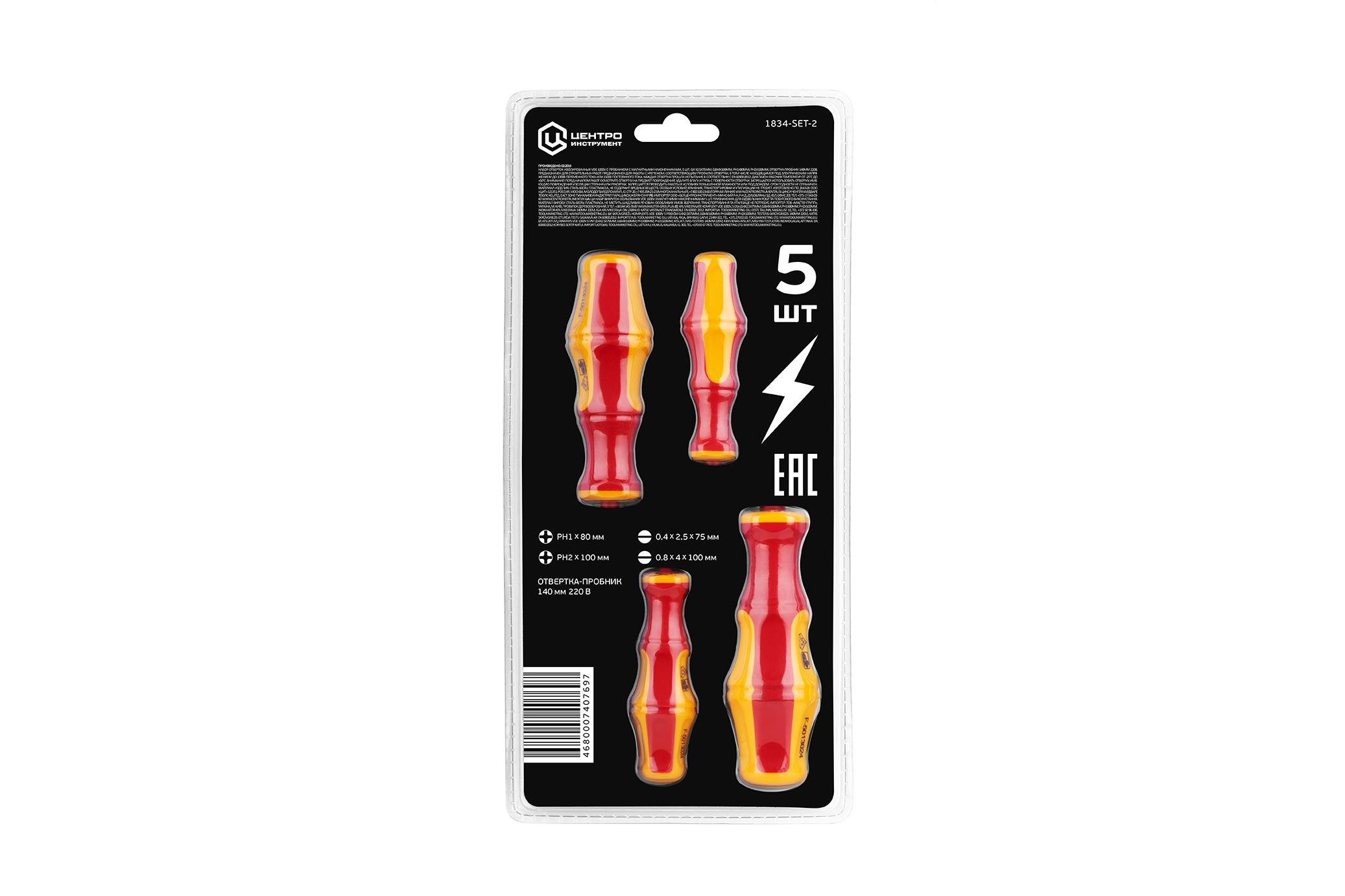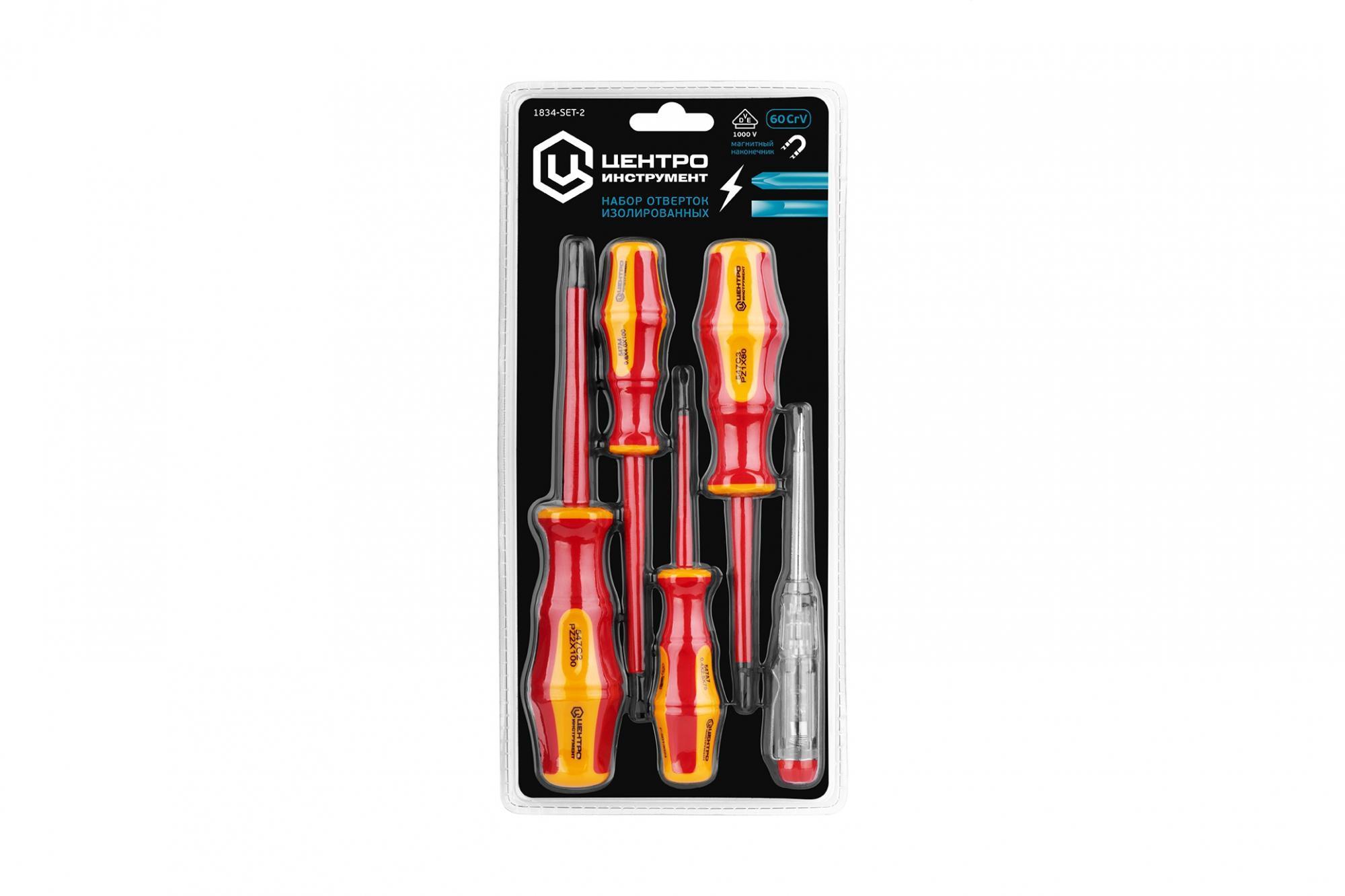 Набор изолированных отверток Центроинструмент 5 предметов 1834-SET-2 предназначен для работ с резьбовыми соединениями при ремонтных и монтажных работах. Рукоятка и жало отверток изолированы для работы с электросиловыми установками с напряжением до 1000 В. Жало отверток выполнено из качественной хромованадиевой стали 60CrV, что обеспечивает прочность и долговечность. Магнитный наконечник позволяет удобно удерживать крепеж при работе. Двухкомпонентные эргономичные рукоятки оснащена антискользящим покрытием из термопластичной резины (TPR). Отверстие в рукоятках служит для размещения на демонстрационном стенде или верстаке. Рукоятки устойчивы к воздействию масел, бензина и керосина. Отвертки прошла испытание в соответствии с EN 60900:2012. Диапазон рабочих температур от -25°С до +50°С. Отвертка-пробник выполнена из прочного пластика.