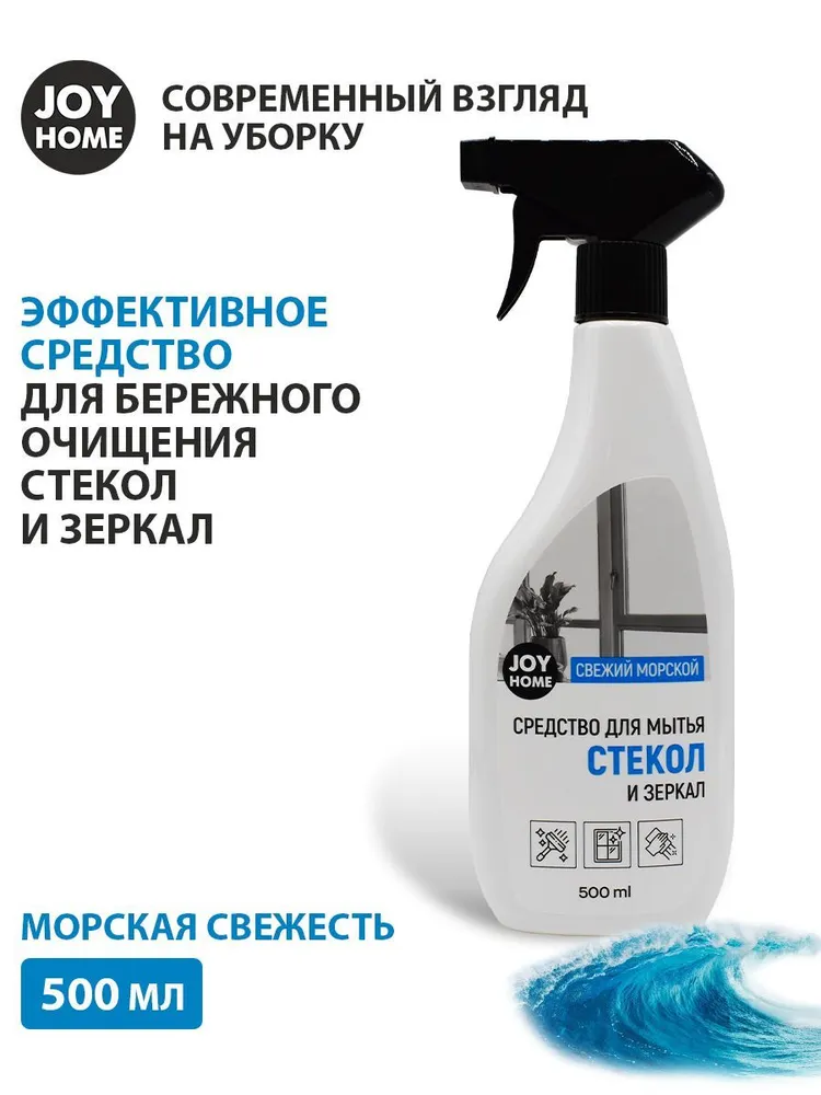 Средство для стекол и зеркал JOY HOME "свежий морской" - эффективное средство для бережного очищения стекол и зеркал. Подходит для очищения хрусталя, фарфора и фаянса. Удаляет жировой налёт, грязь, копоть, отпечатки пальцев и следы насекомых, не оставляя разводов и придавая блеск.