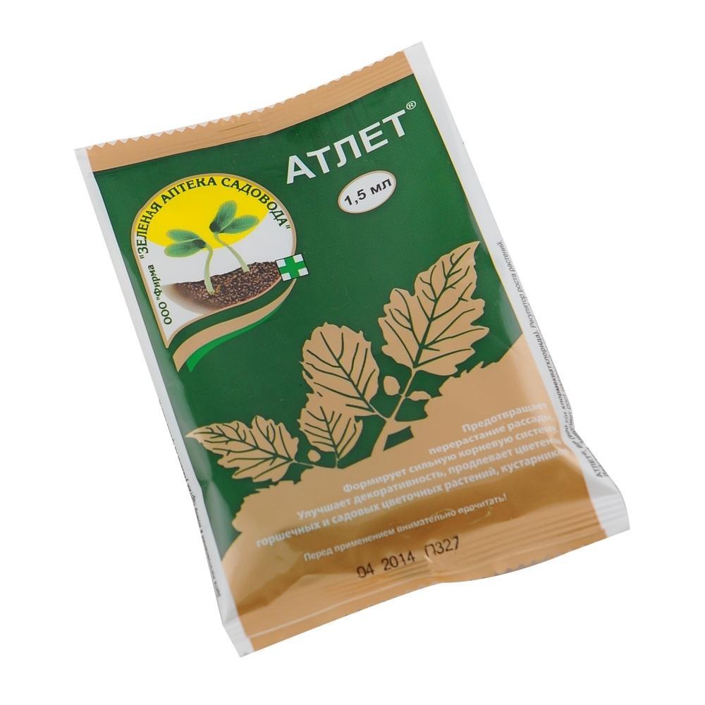 Препарат для рассады, горшечных и садовых растений, Атлет, 1,5 мл. С помощью Атлета можно получить:- крепкую здоровую не вытянутую рассаду и ранний урожай овощей;- компактные цветущие горшечные растения;- красивые клумбы и бордюры с разновысокими растениями.Для чего и где применять- для предотвращения перерастания рассады овощных, цветочных культур;- для улучшения декоративности, продления цветения горшечных и садовых растений, кустарников.Как применять регулятор роста растений Атлет ампула 1,5 мл- опрыскивать или поливать рассаду, начиная с фазы 3-4 настоящих листьев;- поливать цветы, опрыскивать кустарники в фазе бутонизации или при перерастании.Действие и результат- замедляет рост растений в высоту;- формирует атлетические растения с толстыми стеблями, темно-зелеными листьями и мощными корнями;