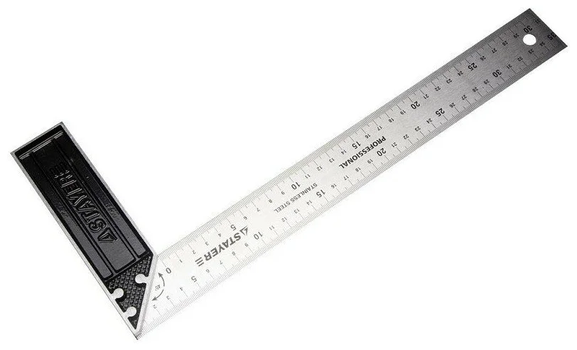 Cтолярный угольник "PROFI" Stayer 3431-35_z01 изготовлен из нержавеющей стали. Его используют для проведения измерений при выполнении различных видов работ, а также проверки прямого угла. Для удобства разметка на его измерительной части сделана с двух сторон. Длина сторон угольника 37 мм и 350 мм. Угольник оснащен гравированной шкалой, что позволяет долго использовать инструмент, так как она не сотрется со временем.
