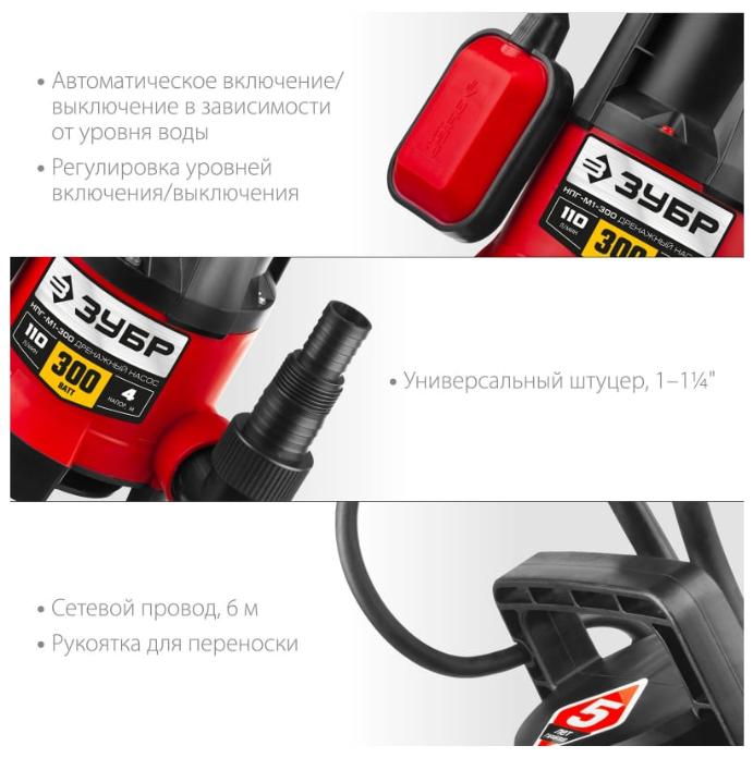 Погружной дренажный насос для грязной воды ЗУБР М1 НПГ-М1-400 подходит для очистки колодцев и осушения затопленных помещений.