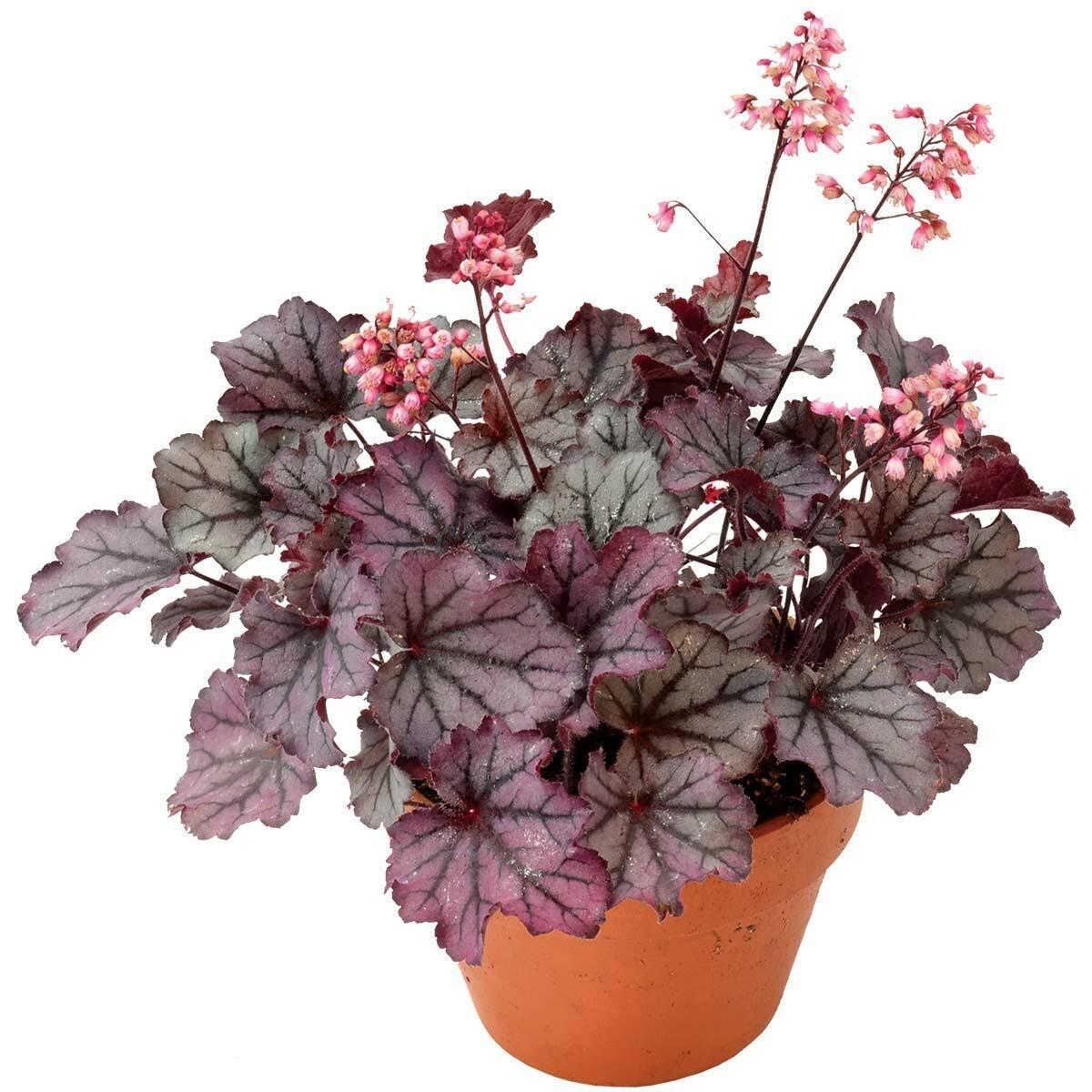 ейхера представляет собой плотный компактный куст, в состав которого входят кожистые длинночерешковые листовые пластины, имеющие зубчатую кромку. Окрас и форма листьев очень разнообразны. Они могут быть практически черными, темно-бордовыми, розовыми, желтыми, насыщенно-красными, янтарными, фиолетовыми, зелеными и даже серебристыми, на их поверхности имеются разнообразные прожилки, рисунки, пятнышки и крапинки. Текстура листовых пластин бывает гофрированной, гладкой и кудрявой. Кусты украшают цветки на протяжении всего летнего периода, а в некоторых случаях и до первых морозов. Метелковидные соцветия состоят из мелких колокольчиков белого, красного, розового либо кремового цвета. Плод представляет собой коробочку, в которой находятся многочисленные семена величиной с маковое зернышко (в 1 г содержится примерно 20 тысяч семян).