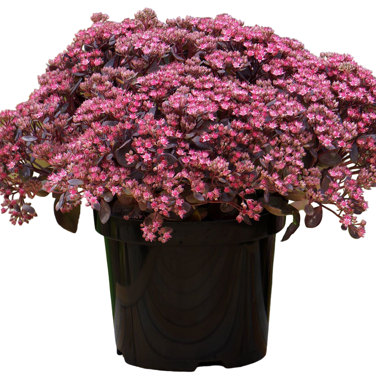 Очиток (седум) Пёрпл Эмперор - это травянистое суккулентное низкорослое растение семейства Толстянковые.Высота до 45 см. Необычайно эффектное растение, в течение всего лета украшающие сад плотными и красивыми пурпурно-фиолетовыми листьями, густо покрывающими их стебли. Листья темные, пурпурно-фиолетовые. Цветки розовые. В июле-августе на конце стеблей образуется масса мелких зеленых цветков, которые собраны в широкие зонтиковидные соцветия. А в августе или сентябре - когда шапки цветков постепенно окрашиваются в терракотово-розовые или кремово-красные цвета.