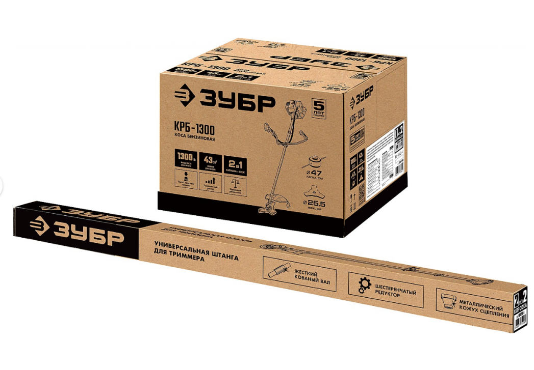 Бензокоса Зубр КРБ-1300 поможет подстричь траву, удалить одеревенелую поросль или подровнять кустарник около дома.