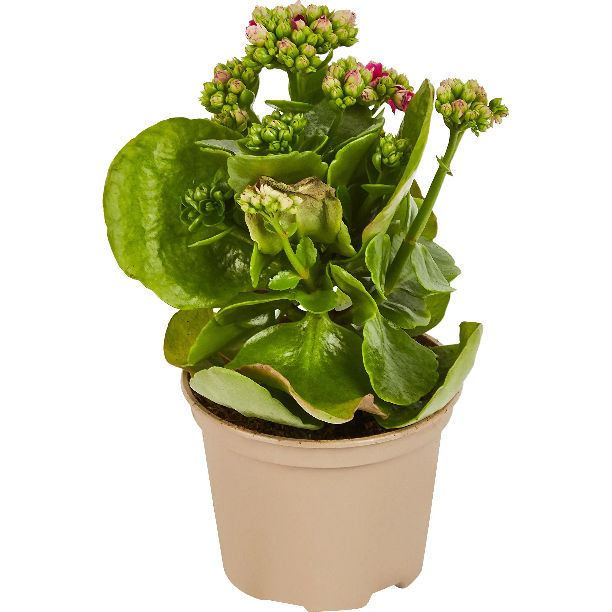Каланхое Каландива — неприхотливое декоративное комнатное растение. Отлично адаптируется к условиям произрастания, обильно цветет на протяжении долгого времени. Выглядит как компактный кустик с плотными глянцевыми листьями округлой формы, резными по краю. В высоту не вырастает более 30 см. Цветет собранными в соцветия-корзинки небольшими ажурными цветками. В зависимости от сорта они могут быть белого, розового, красного, желтого цветов.
