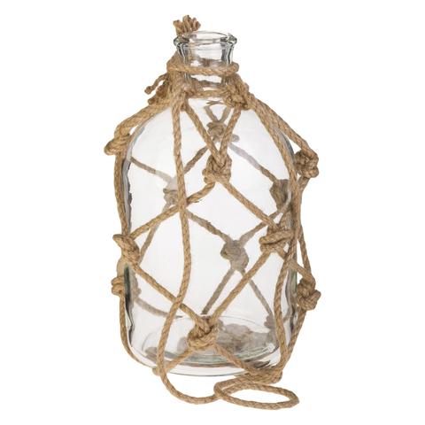 Ваза Монтаук - это современный подход к украшению домашнего интерьера, с акцентом на винтажный стиль. Высотой в 33,5 сантиметров и объемом в 5 литров, ваза самодостаточна в своей красоте. Сходство с хозяйственным бутылью для вина или банкой, не делает ее предметом для домашнего обихода, а скорее наоборот, создает пространство для творческих идей. Так современные дизайнеры обозначили широкий простор для использования стеклянного бутыля. Массивный сосуд может украшать как гостиные комнаты, преимущественно на широких каминных полках, комодах или низких столах. Длинная искусственная ветвь цветка внутри вазы, поможет украшению оформить напольное пространство возле дивана или на кухне. Декоративная тканевая оплетка добавляет изделию натуралистичности. Прозрачное и гладкое стекло создано благодаря правильной температуре плавления кварцевого стекла и точного соотношения других ингредиентов. Отсутствие механических царапин или внутренних волн не нарушают гладкости и яркого блеска.